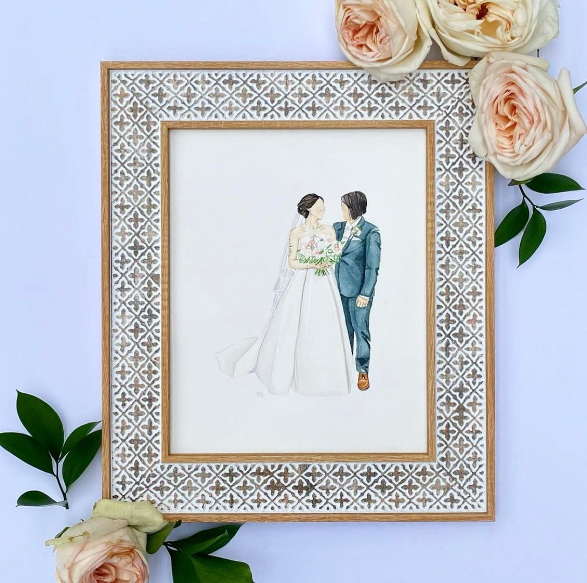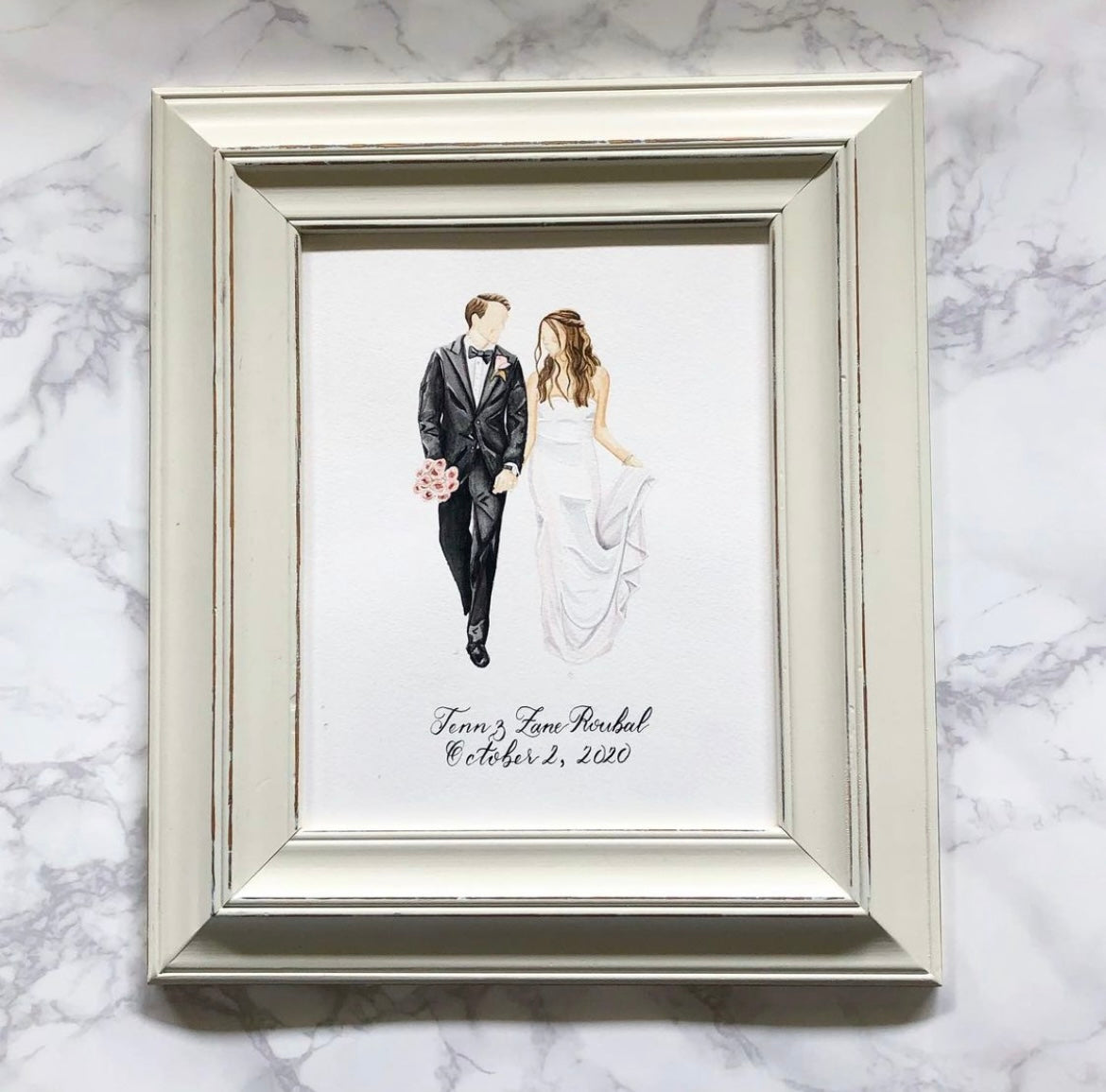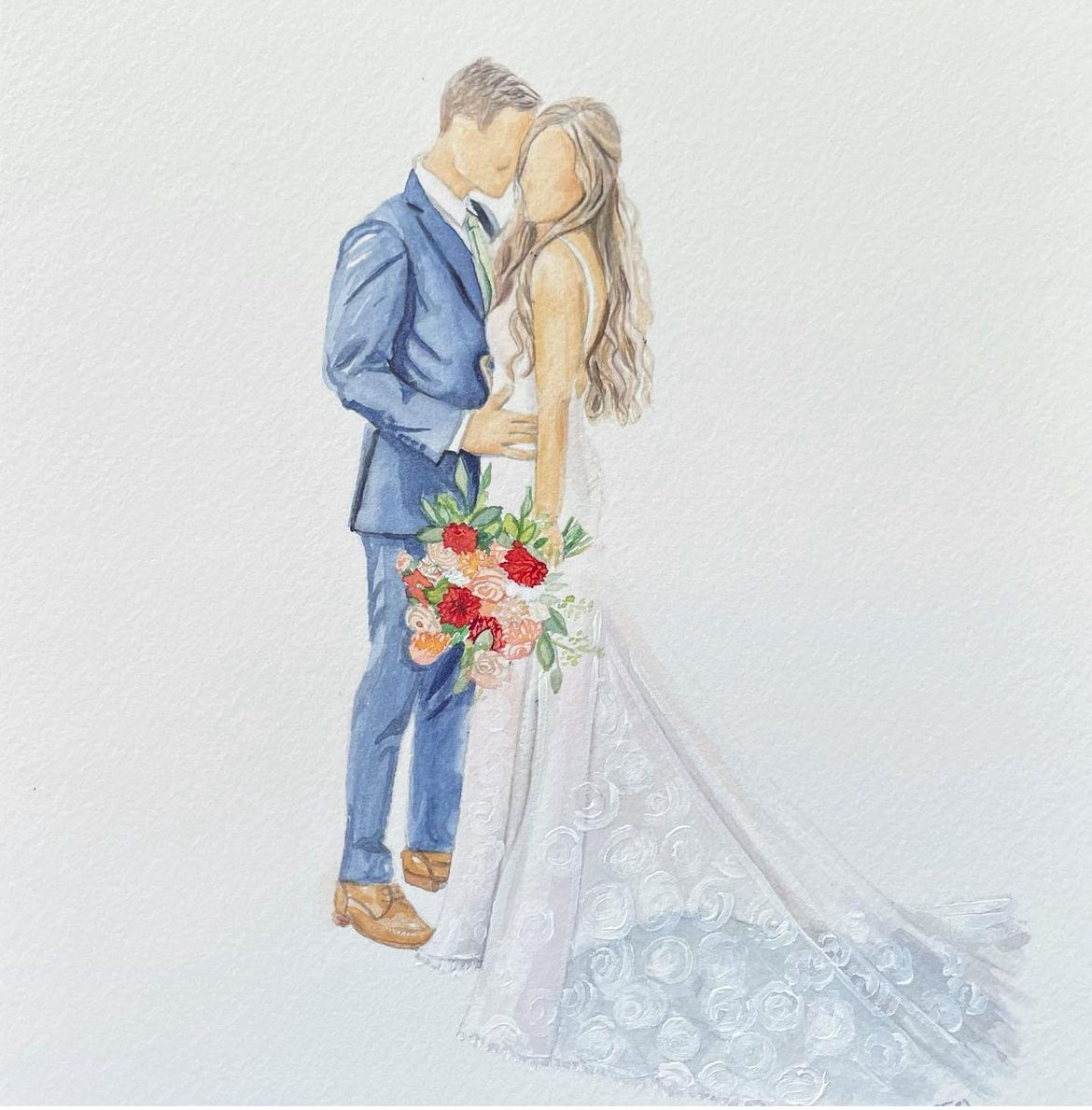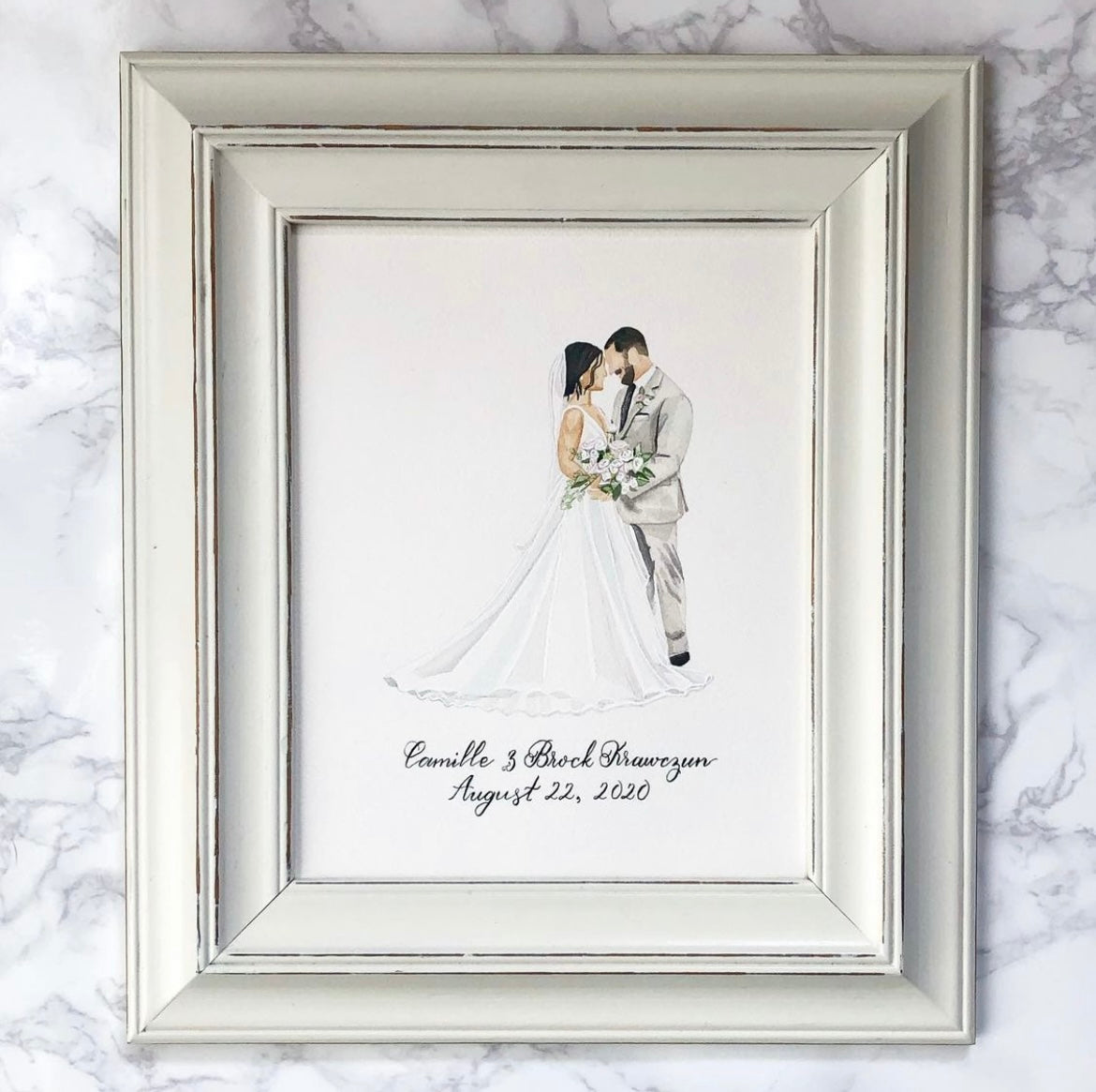 This listing is for a custom 8" X 10" painting only, frame and other items pictured are not included. Your portrait will be created in an impressionistic faceless style. Full body photos that show the facial profile of the wedding couple look best in this style!