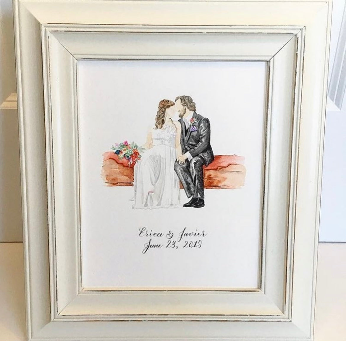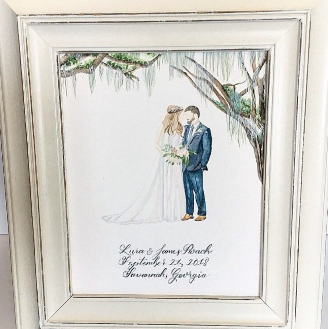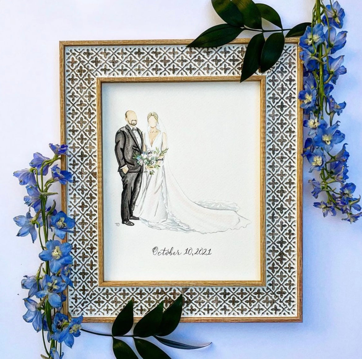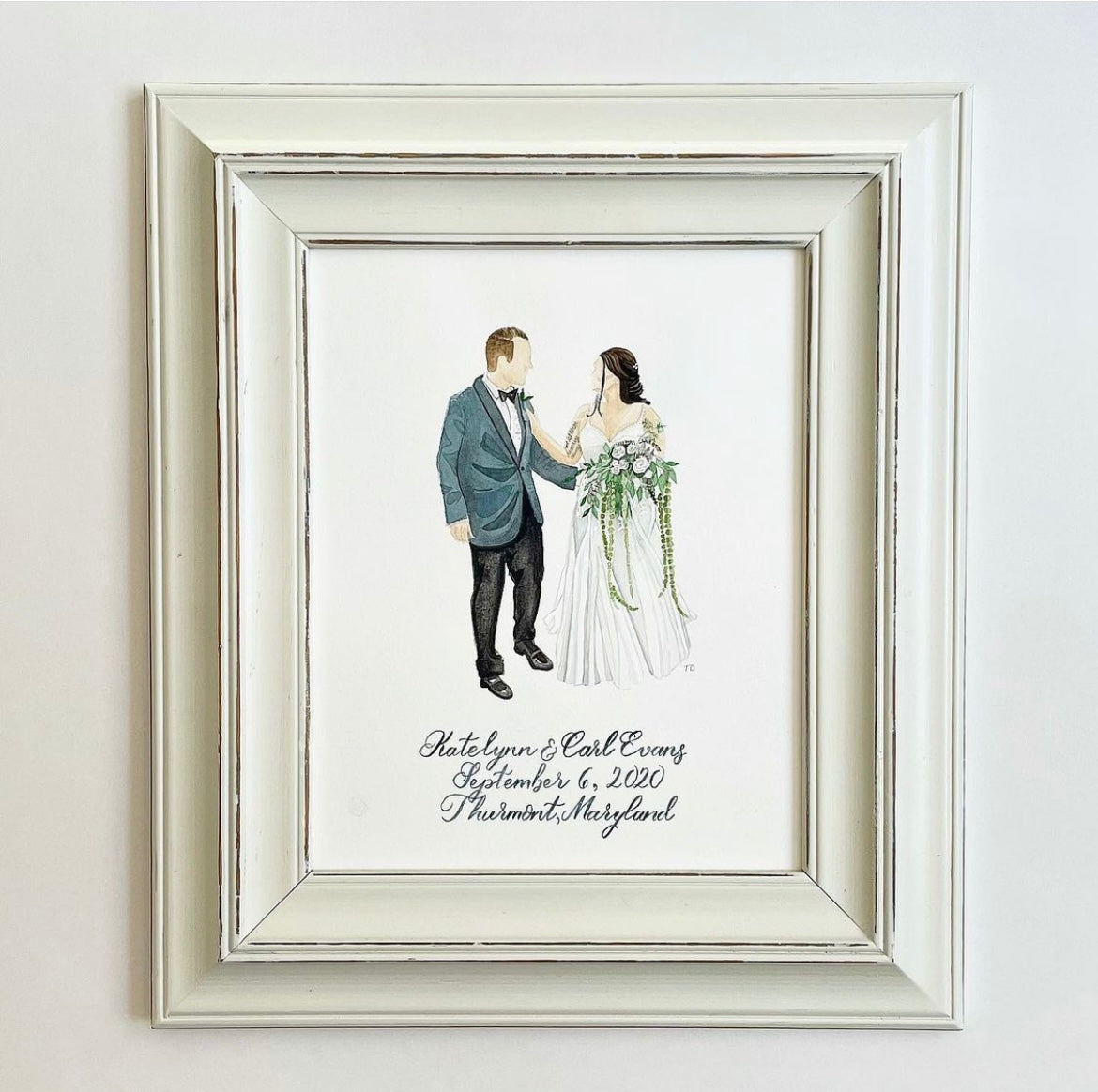 This listing is for a custom 8" X 10" painting only, frame and other items pictured are not included. Your portrait will be created in an impressionistic faceless style. Full body photos that show the facial profile of the wedding couple look best in this style!