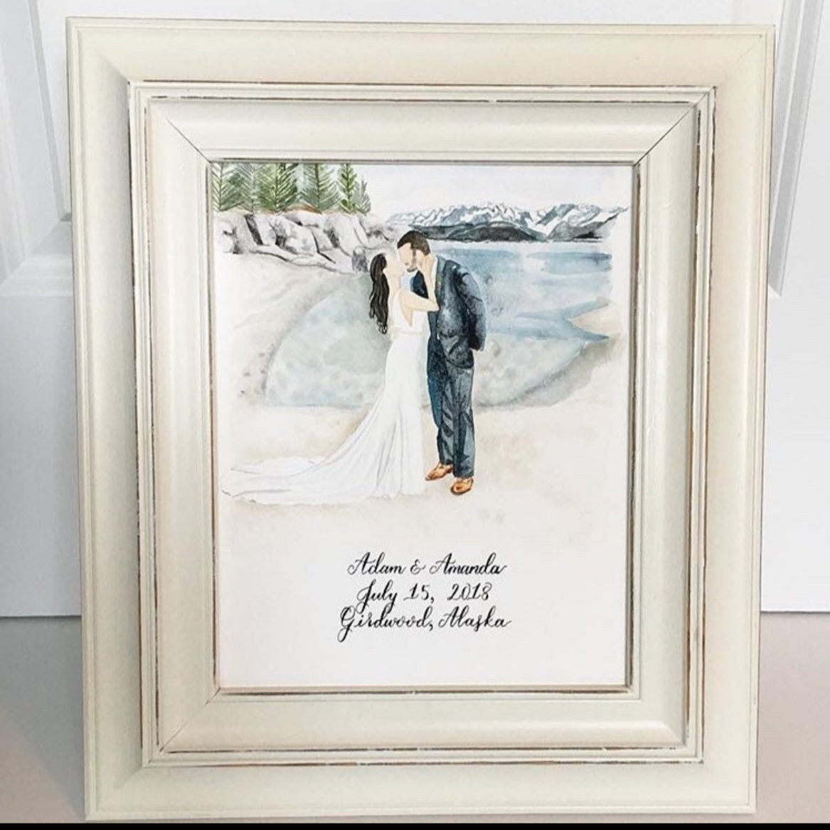 Wedding Portrait | Custom 8" x 10" Watercolor + Calligraphy Painting